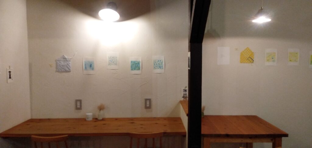 先週末、紫竹にあるカフェKONONEKIさんの壁をかざらせてもらいました。
